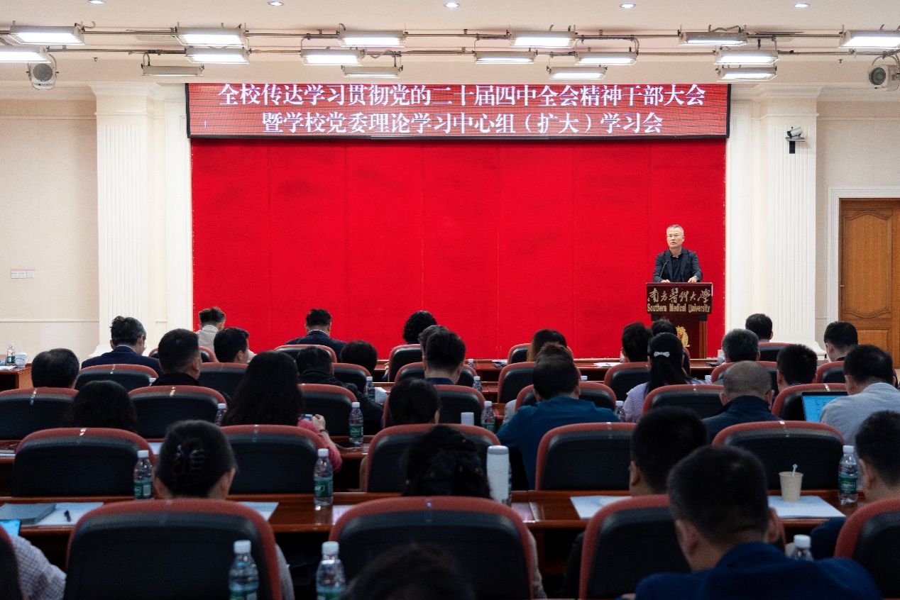 “学习宣传贯彻党的二十届四中全会精神,是当前和今后一个时期的重大政治任务。”张玉润强调,全校要深刻领会二十届四中全会的重大意义、丰富内涵和精神实质,切实把思想和行动统一到全会精神上来。要统筹抓好教育培训和宣传宣讲,推动全会精神在学校落地生根、结出丰硕成果。要对标全会战略部署,认真谋划“十五五”时期学校重点工作。要补齐短板弱项,深化协同创新,促进医、教、研、转化互促互强。会上,他还就做好岁末年初各项工作进行了细致部署。