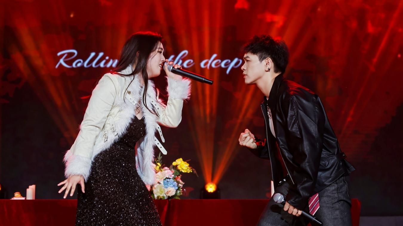 经典旋律碰撞爆发式舞台能量,引燃理性与情感的深度燃烧。教师陈艺洋与学生谭志豪双声交织,倾诉与呐喊共振;鼓点轰鸣,恰似心跳铿锵。让大家在歌声中见证——真理的火焰,于无数次深潜后划破黑暗;无畏的勇气,携冲破深潭的力量,直面前路未知!