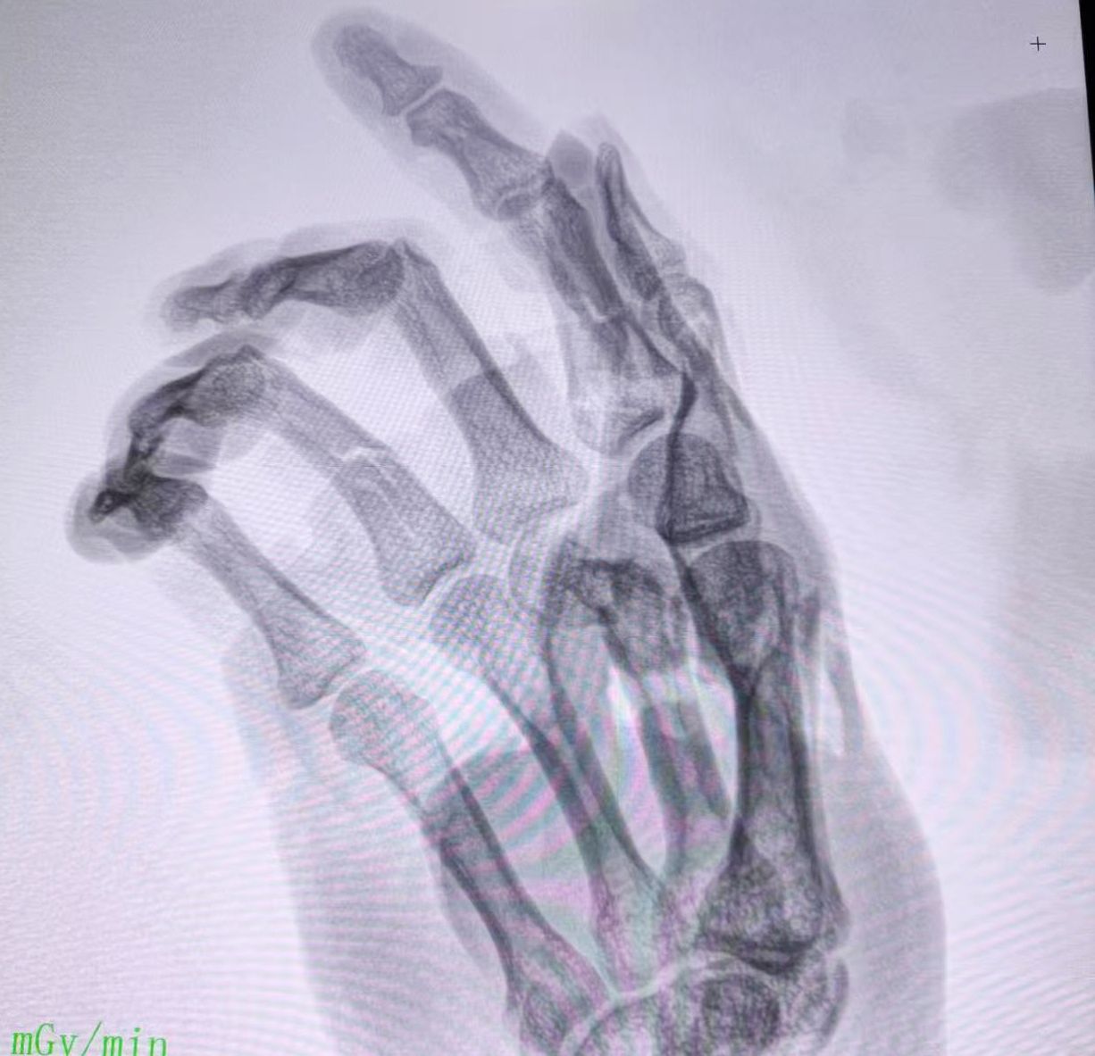 患者推入手术室后,消防员最大程度安全、零震动拆解了绞肉机器;麻醉科医生黄子原、吴思达等为患者进行插管全身麻醉和止痛镇静;手术室护士郭李君、杨鹏飞等为患者进行术前准备和手术配合;蔡宝塔团队采用掌骨骨折切开复位内固定术+各种深部组织感染清创术+石膏外固定术等手术方式,精准复位固定及低张力吻合神经,重建手指手掌关节功能,最大程度修复肢体功能。
