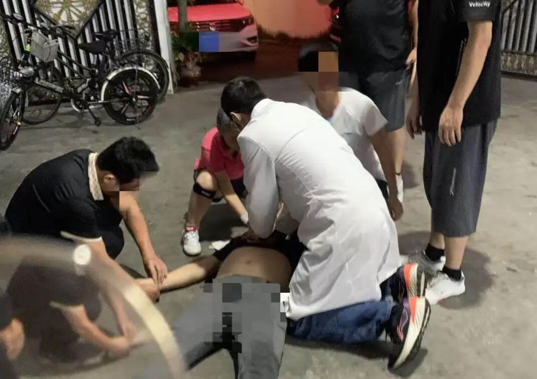 恰巧在现场运动的南医五院医务人员江学炜、唐蓉晖以及江埔街社区卫生服务中心贺福香第一时间对患者进行心肺复苏。为提升抢救效率,急救团队同步联系附近团星村卫生站,协调医生许海平携带自动体外除颤仪(AED)赶往支援。多方接力之下,经过持续抢救,患者恢复自主心跳,随后由120救护车送至南医五院心内二科进一步治疗。目前患者生命体征平稳,抢救工作取得阶段性成功。