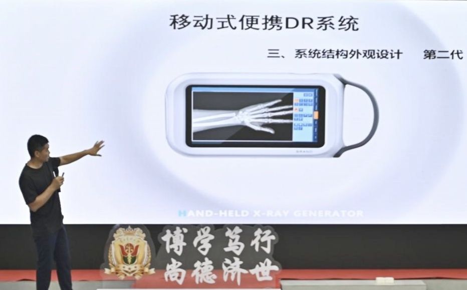 医学信息研究所贠照强介绍了自主研发的移动式便携DR系统,该产品的高度集成化设计为应急诊疗和移动诊疗场景提供了重要技术支撑。