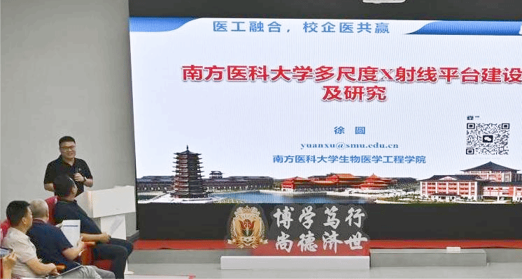 生物医学工程学院长冯前进系统介绍了学院在生物医学成像、医学图像分析、智能医学诊断、诊疗生物材料等前沿领域的深厚积累与科研攻关能力。四个优秀科研团队随后进行了专题汇报。