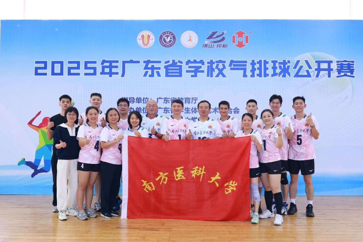 本次大赛由广东省教育厅指导,广东省学生体育艺术联合会主办,广州医科大学承办,省学体联排球分会协办,参赛阵容强大、竞技水平高、影响力广。我校派出由生物医学工程学院、外国语学院、南方医院、珠江医院、中西医结合医院、第五附属医院等单位教职工组成的“南医联队”出征应战,生物医学工程学院党委副书记龚剑担任领队。