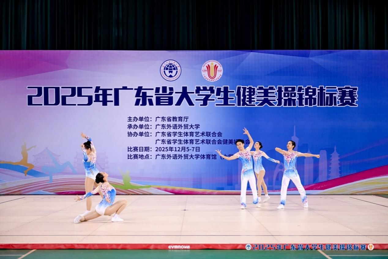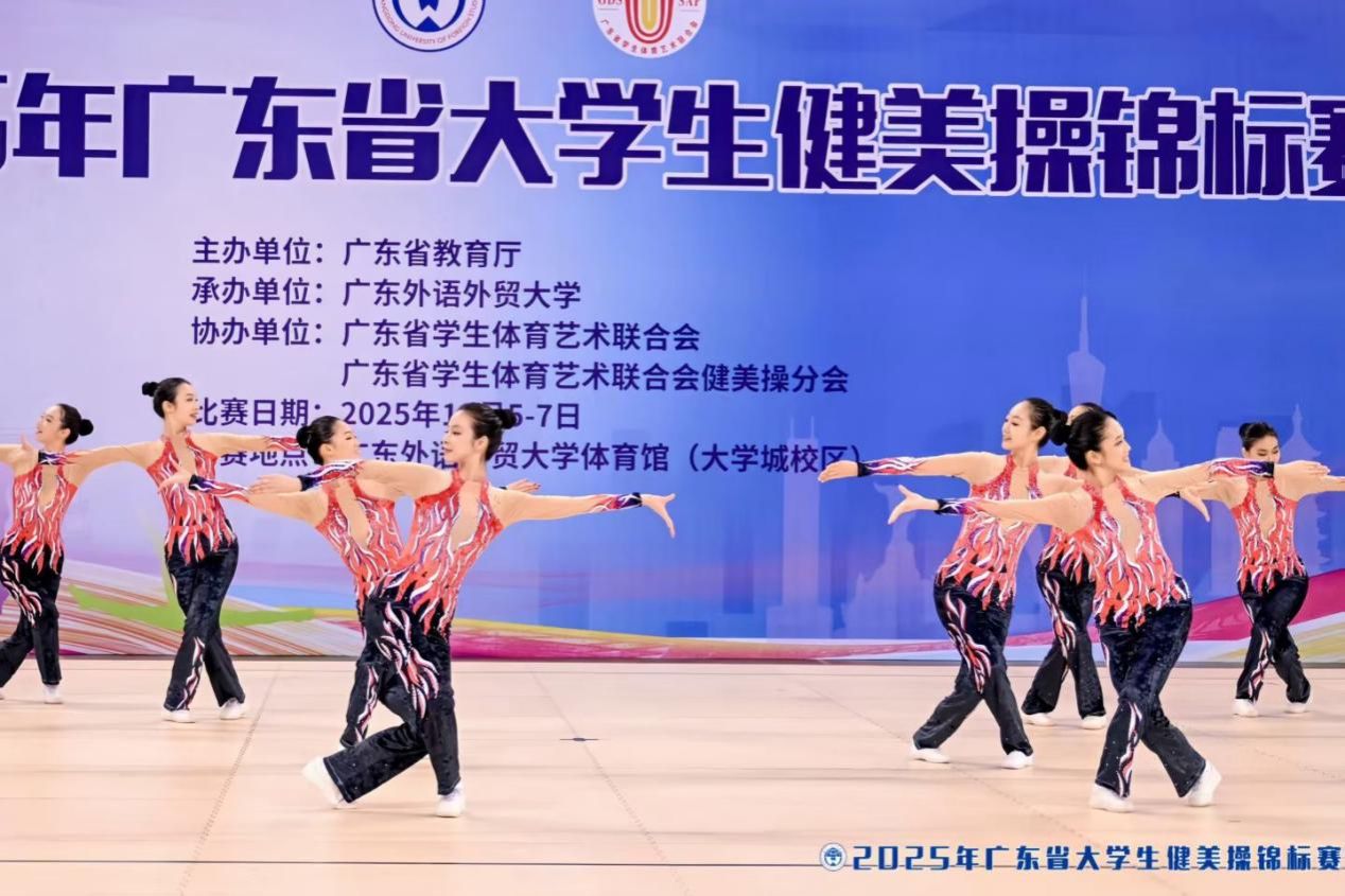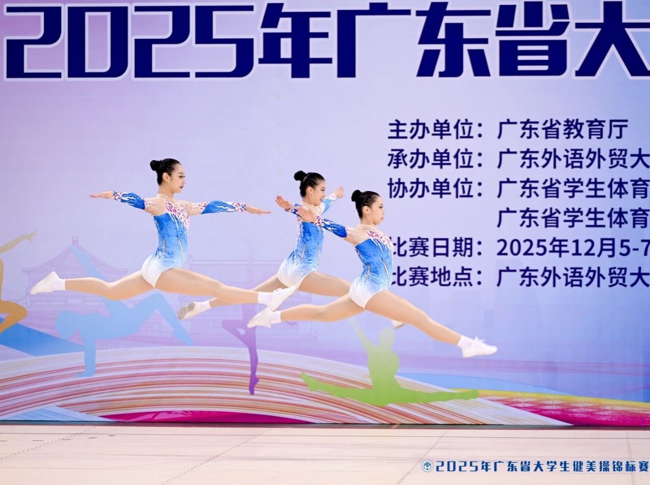 12月6日-7日,2025年广东省大学生健美操锦标赛上,来自全省各高校的健美操队精英齐聚一堂,展开了一场精彩绝伦的力与美的角逐。我校健美操队以六金一银两铜的耀眼成绩、团体总分断层第一的绝对优势,创造了学校在该项赛事中的最佳成绩。