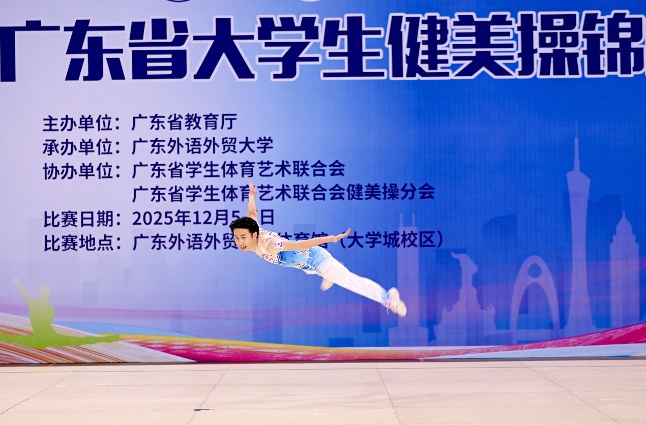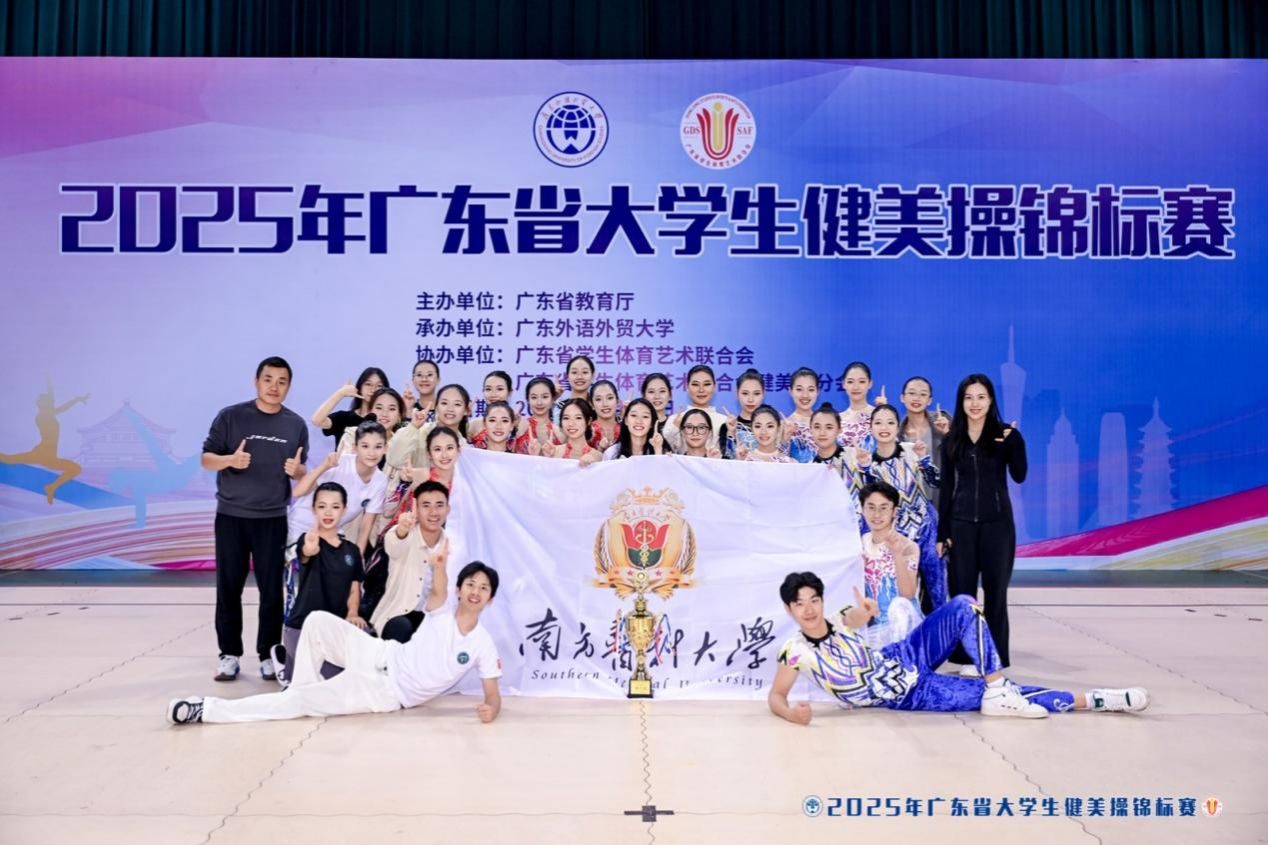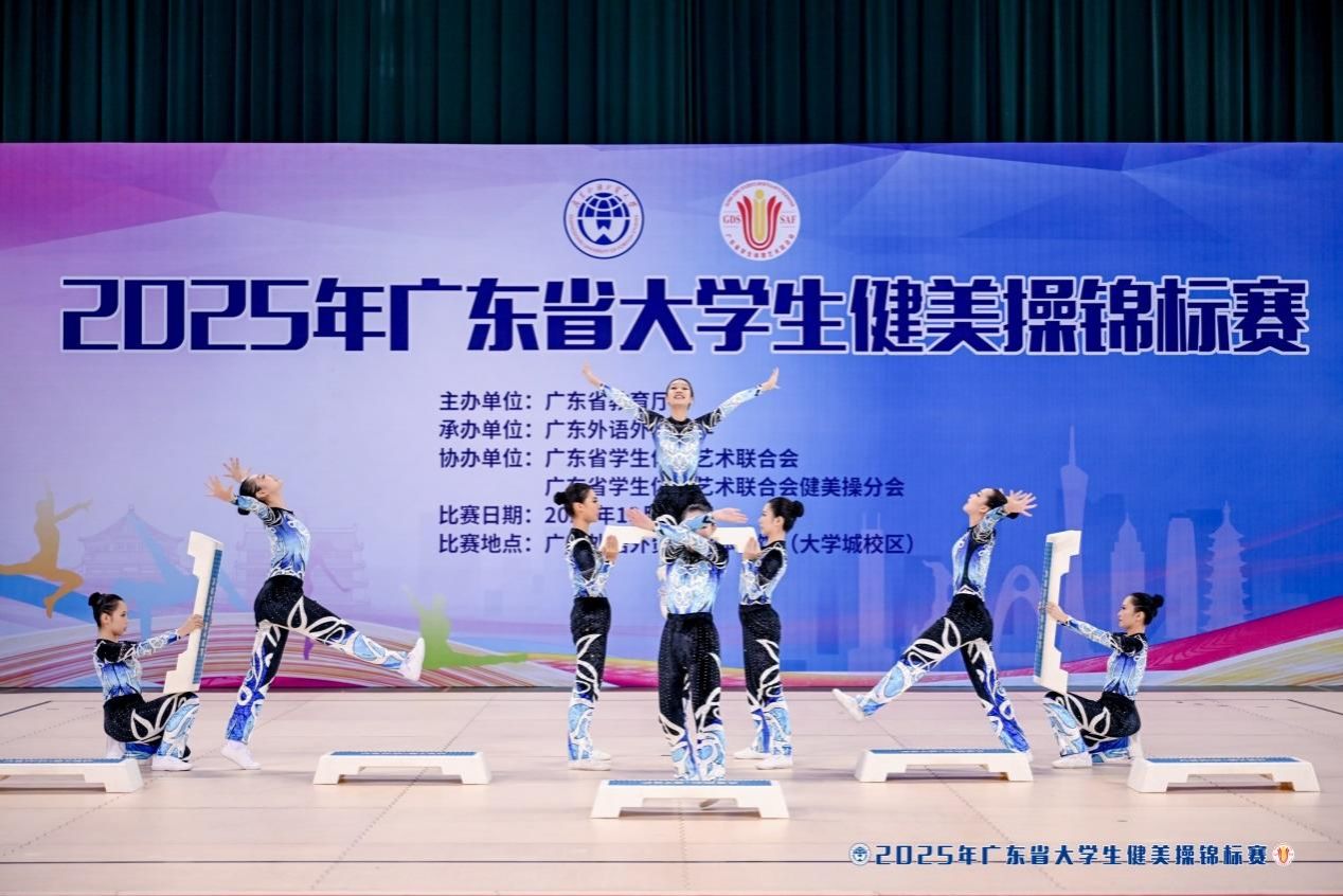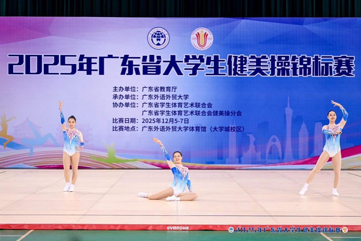 12月6日-7日,2025年广东省大学生健美操锦标赛上,来自全省各高校的健美操队精英齐聚一堂,展开了一场精彩绝伦的力与美的角逐。我校健美操队以六金一银两铜的耀眼成绩、团体总分断层第一的绝对优势,创造了学校在该项赛事中的最佳成绩。