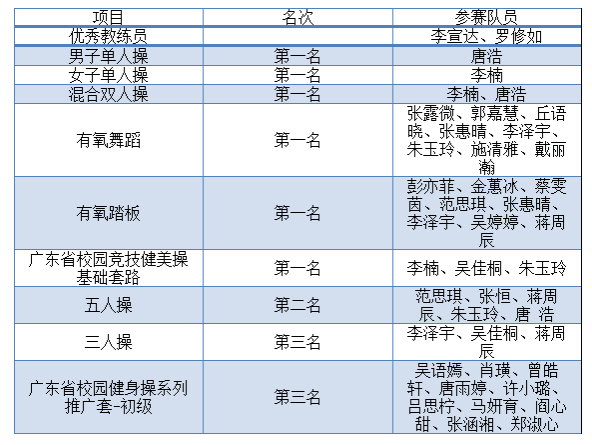 广东省校园竞技健美操基础套路第一名