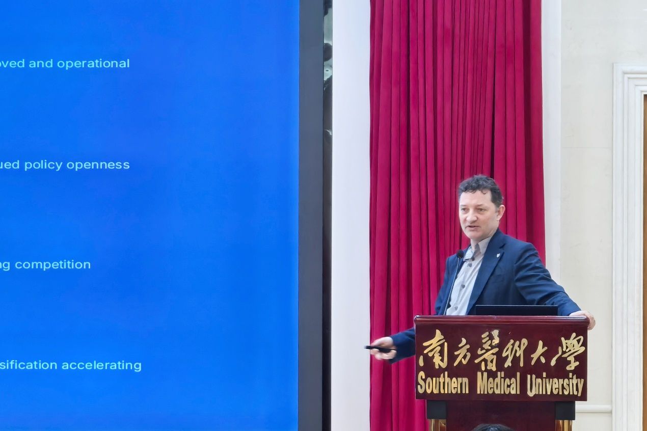 麦考密克深耕国际高等教育合作领域多年,同时在G蛋白偶联受体信号转导等生物医药前沿研究成果颇丰,主持多项英国国家级科研项目。此次讲座中,他以时间为脉络,系统梳理二十余年来中英跨国教育合作的演进轨迹,将其划分为三个关键阶段:2000年代以“英国学位单向输出”为核心的出口模式,2015至2022年实体分校落地但教育融合有限的探索阶段,以及2026年政策导向下强调“共享治理与本地价值创造”的深度协同阶段。