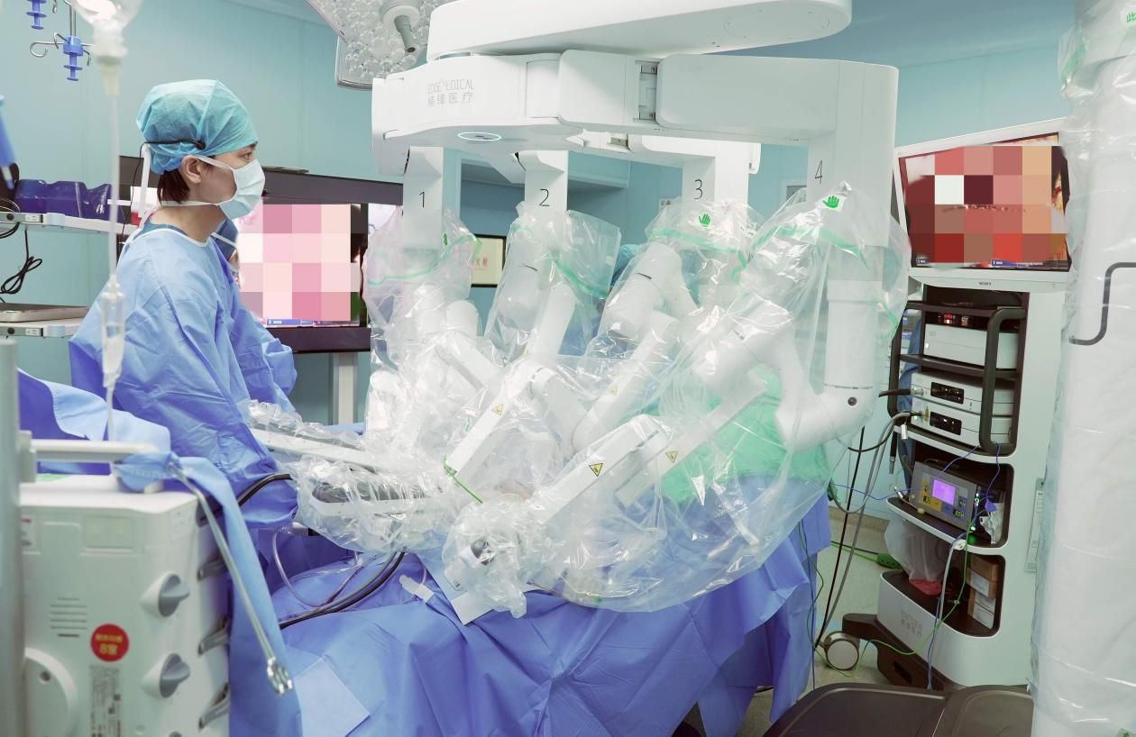 作为本次系列手术的技术高峰,中国科学院院士张旭在北京的操控台前,通过国产机器人系统,为位于南方医院手术室的患者实施了前列腺癌根治术。
