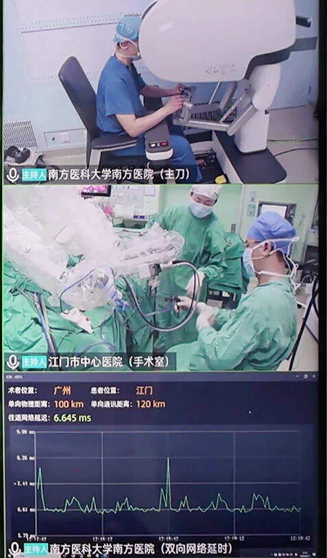 南方医院泌尿外科主任吴芃为江门市中心医院的一位独肾患者,完成了输尿管部分切除+输尿管膀胱成形术。这台复杂的重建手术远程成功,标志着高难度泌尿外科修复技术已能通过5G网络实现跨地域安全交付。