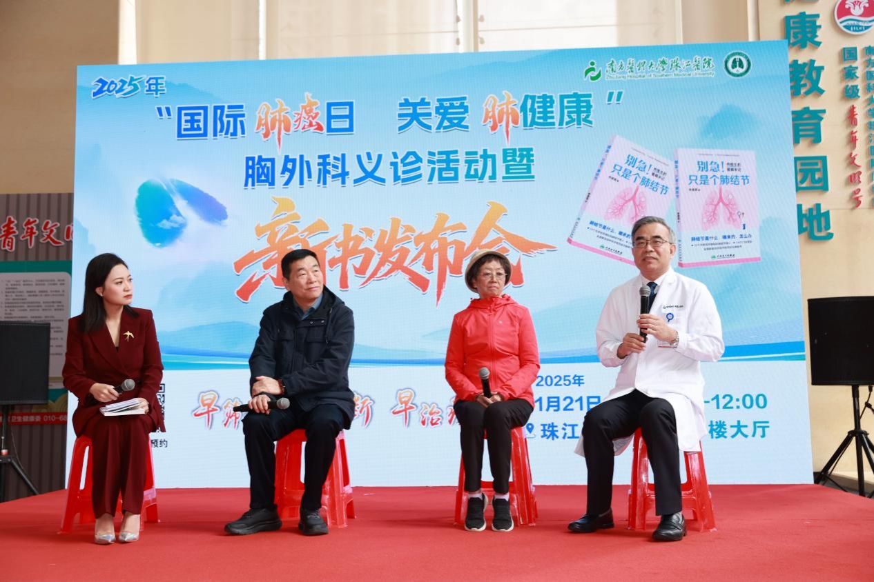 “内容不仅严谨,也十分‘安神’。”11月21日“国际肺癌日”当天,一场集新书发布、大型义诊、健康讲座于一体的“关爱肺健康”活动热闹开场。珠江医院胸外科主任乔贵宾团队携耗时三年打磨的科普力作《别急!只是个肺结节》正式亮相。医院党委书记苏广武、院长郭洪波,胸外科主任乔贵宾以及人民卫生出版社华南分社副总编辑吕健与部分患者共同为新书揭幕。