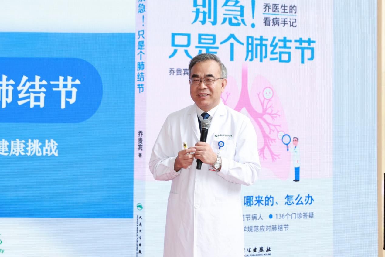 在发布会上,乔贵宾也分享了自己创作这本书的初衷:“做科普一定要说人话、接地气,这本书整整花了三年时间,不断修改打磨,目的就是希望大家看得懂、用得上。”据悉,该书以他近30年临床经验为底,串联23个真实门诊故事,搭配136个高频问答、影像图解与决策要点,把肺结节风险评估、磨玻璃结节判断、复查节奏、手术抉择等专业内容讲得明明白白。