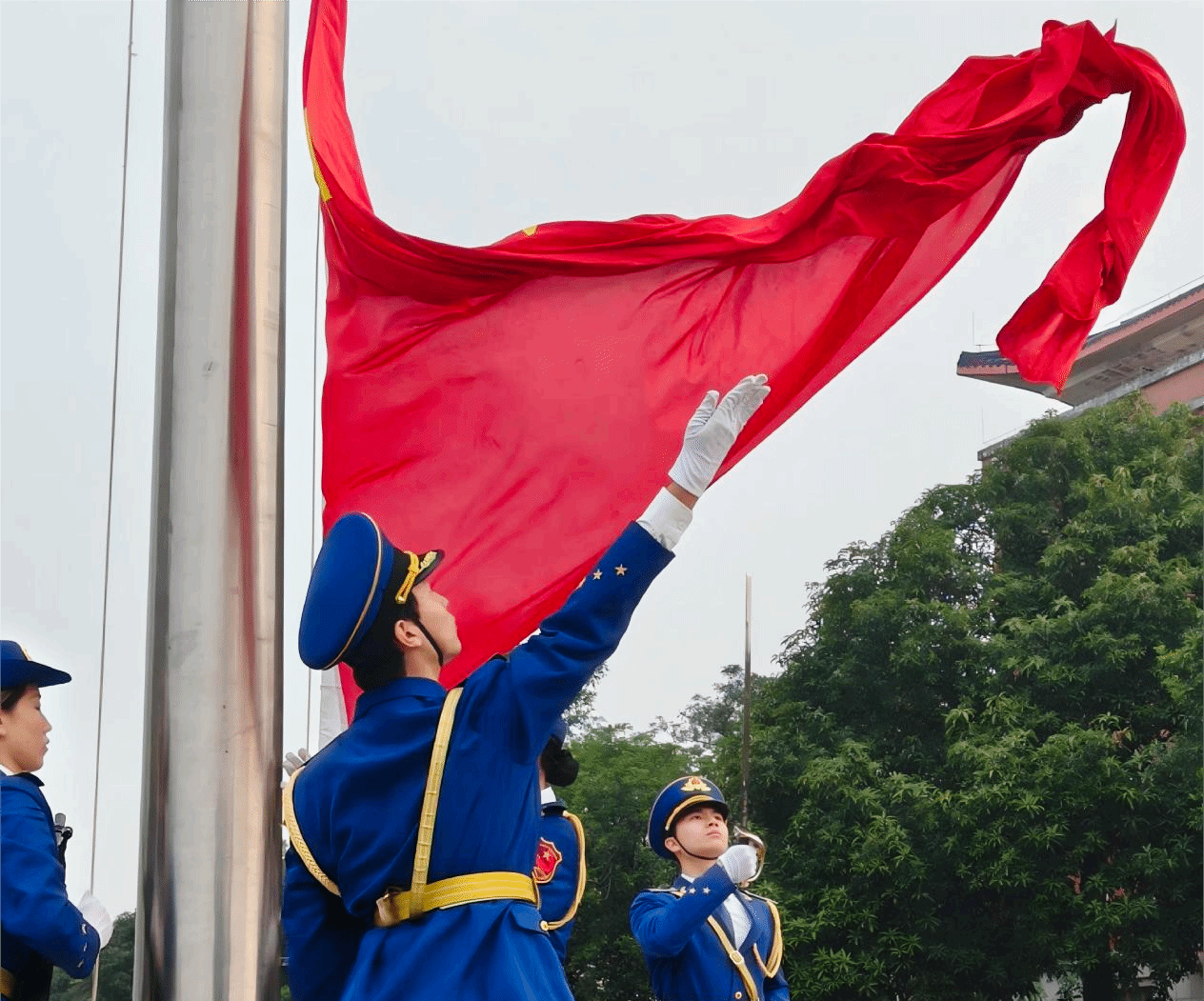 12月31日,由团委举办的主题升旗仪式暨国旗下的思政课在顺德校区行政楼广场举行。中医药学院、生物医学工程学院、检验生物与技术学院、外国语学院、第一临床医学院、深圳临床医学院等6个学院的青年教师代表及2025级学生齐聚现场,以特别的一课开启新年。晨曦微露,国旗护卫队队员身着笔挺礼服、手持礼宾枪,精神抖擞,迈着整齐划一的步伐昂首走向旗坛。伴随着雄壮激昂的《义勇军进行曲》,鲜艳的五星红旗迎着朝阳缓缓升起、迎风...