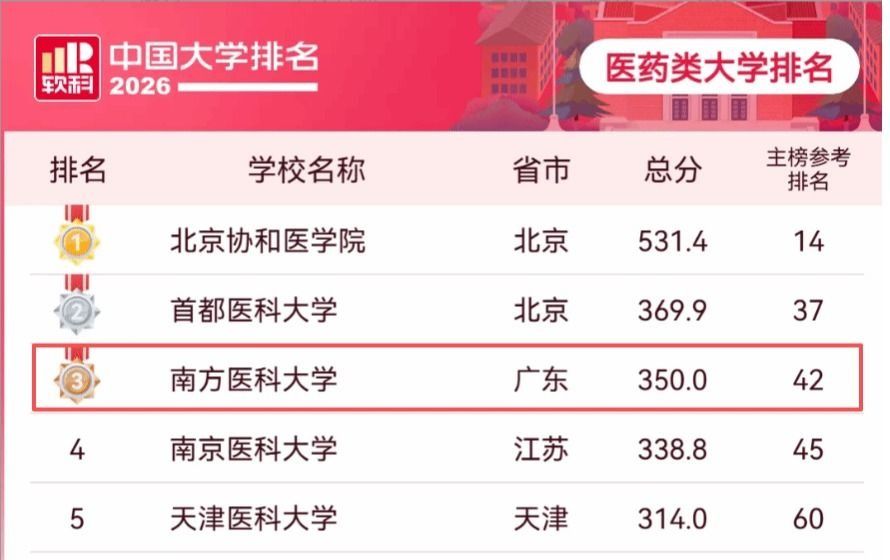 4月15日,软科中国大学排名正式发布。全国共有60所医药类高校入选2026年软科中国医药类大学榜单,我校蝉联第3位。近年来,学校紧扣教育强国、健康中国、科技强国战略部署,坚定不移走一流学科引领世界一流医科大学建设之路,统筹推进教育科技人才一体发展,聚焦质量、特色、贡献,打造服务国家战略需求的基础医学学科高峰,筑牢特色学科高原,前瞻布局新兴交叉学科增长点。2026年是“十五五”规划的开局之年,更是学校冲刺“双...