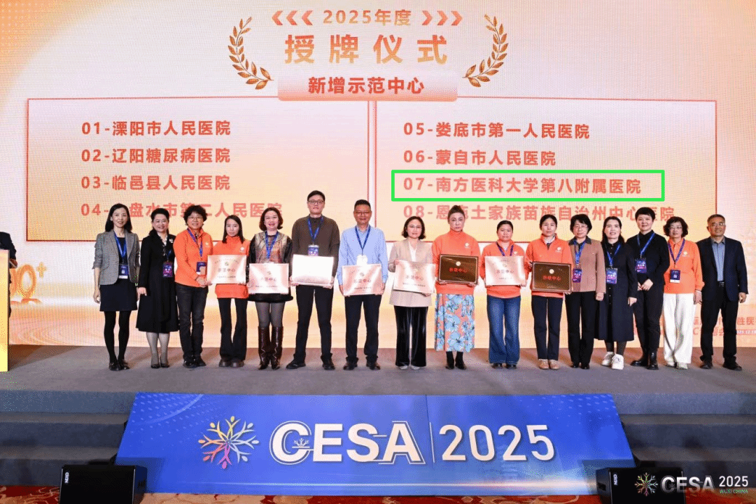 12月19日,在第四届中国内分泌代谢病科联盟年会上,第八附属医院国家标准化代谢性疾病管理中心(MMC)获评“全国示范中心”,成为广东省仅有四家入选的医疗机构之一。▲内分泌与代谢科主任柳岚(左八)代表医院上台接受牌匾。医院自2020年7月正式挂牌成立国家标准化代谢性疾病管理中心(MMC)以来,秉承“一个中心、一站服务、一个标准”宗旨,为患者提供一站式诊疗服务,致力于降低糖尿病及其并发症发病率。在此基础上,医院牵...