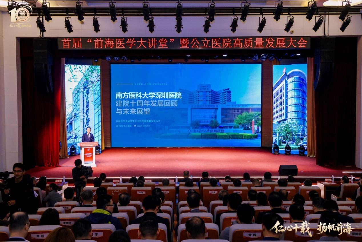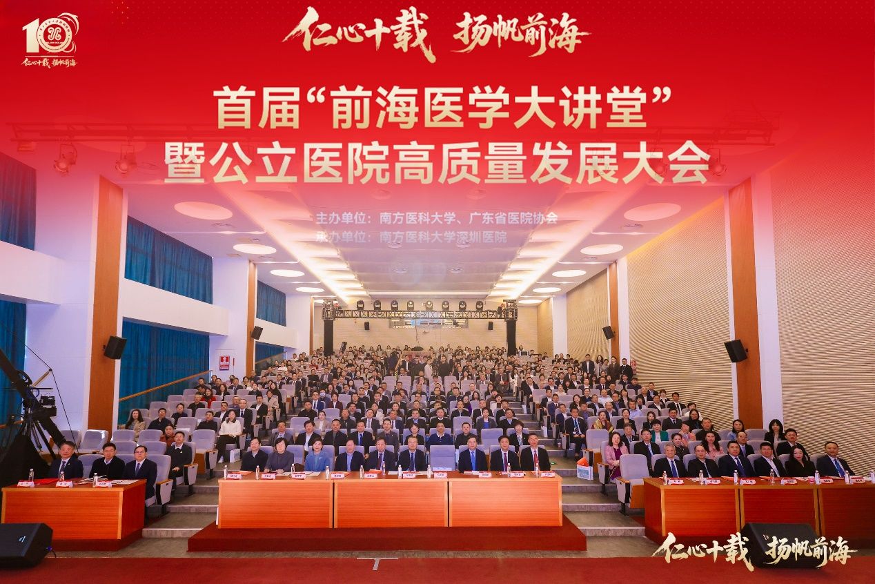 12月27日,首届“前海医学大讲堂”暨公立医院高质量发展大会在深圳医院开幕。大会以“仁心十载·扬帆前海”为主题,汇聚深圳市政府、市卫生健康委、前海管理局等单位领导,院士专家、医疗机构代表及企业嘉宾,南方医科大学、广东省医院协会等主办单位代表共约五百人参会,共商公立医院高质量发展新路径与大湾区医疗健康事业新蓝图。