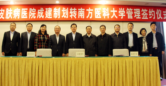 12月9日,广东省口腔医院、广东省皮肤病医院成建制划转南方医科大学签约仪式在广东迎宾馆举行。省委常委、常务副省长徐少华、省教育厅厅长罗伟其、省卫生计生委主任段宇飞、省卫生计生委副主任刘银燕参加了签约仪式。省政府副秘书长刘洪主持签约仪式。根据协议,2017年1月起,省口腔医院、省皮肤病医院将由我校进行管理。