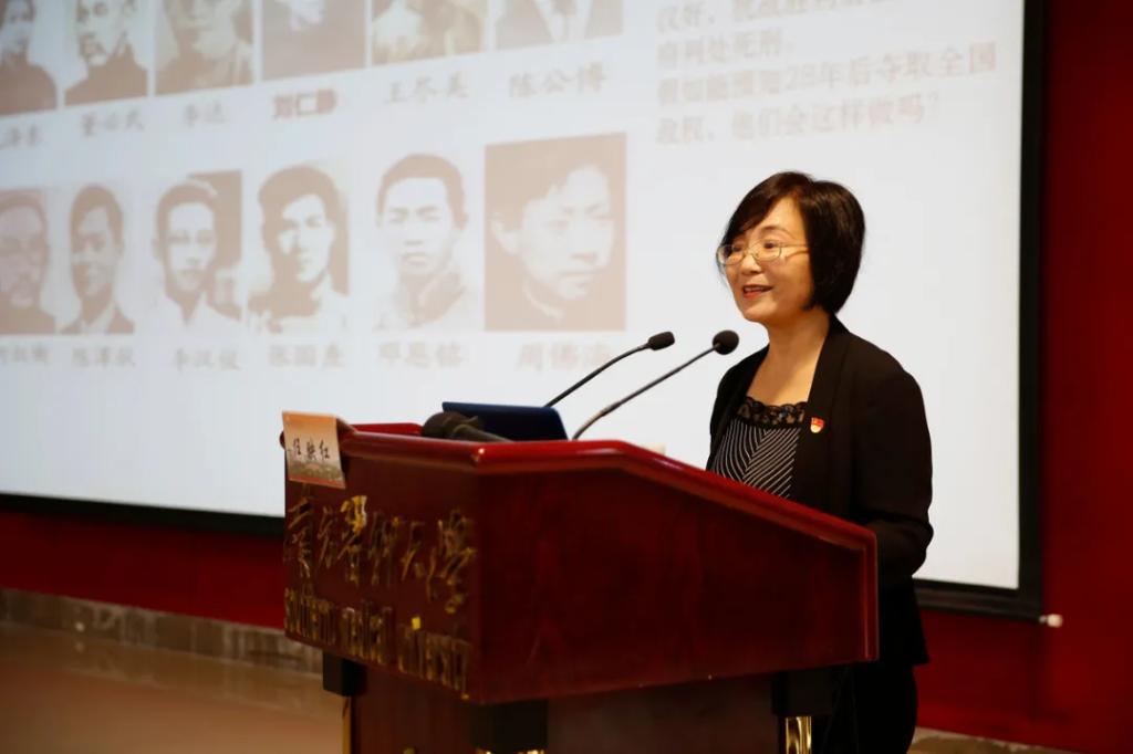 任映红从建党百年的历史回顾、建党百年的历史主题和建党百年的成功密码三个方面,对习近平总书记在庆祝建党100周年大会上的重要讲话精神做了精彩解读。任映红指出,讲话中的“九个必须”分别从根本保证、依靠力量和初心、指导思想、正确道路、安全保证、外部条件国际大战略、精神力量、复兴法宝、自身建设政治保证九大维度论述,构成了创造党的新辉煌、实现民族伟大复兴的政治纲领。有中国共产党的坚强领导,有全国各族人民的紧密团结,全面建成社会主义现代化强国的目标一定能够实现,中华民族伟大复兴的中国梦一定能够实现。