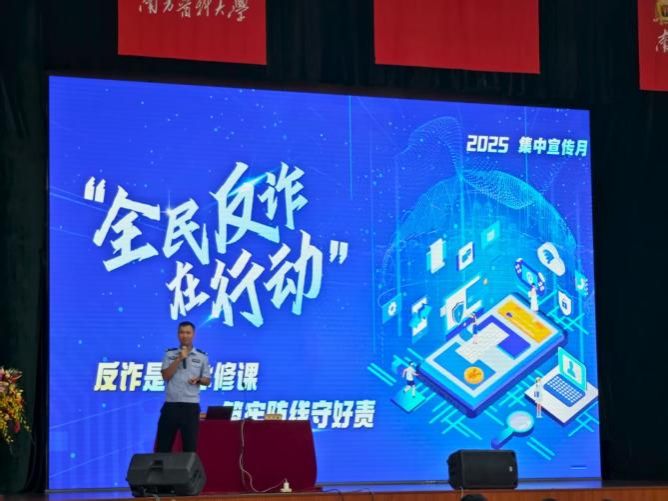 顺德区容桂街道派出所反诈民警冯思敏结合高发的真实案例,深入剖析了当前针对大学生群体最常见的诈骗手法。顺德区容桂街道专职消防队班长郭子泺从消防器材的使用、火灾初期的扑救与逃生等方面帮助新生们掌握消防知识。