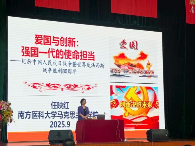 学校新时代党的创新理论研究院院长任映红阐述了当前时代背景下强调“爱国”与“创新”的深刻必要性,期望同学们筑牢信仰之基,将爱国情转化为强国志、报国行,勇立创新潮头,努力攻克关键核心技术,成为推动社会进步和国家发展的先锋力量,肩负起强国一代的使命担当。