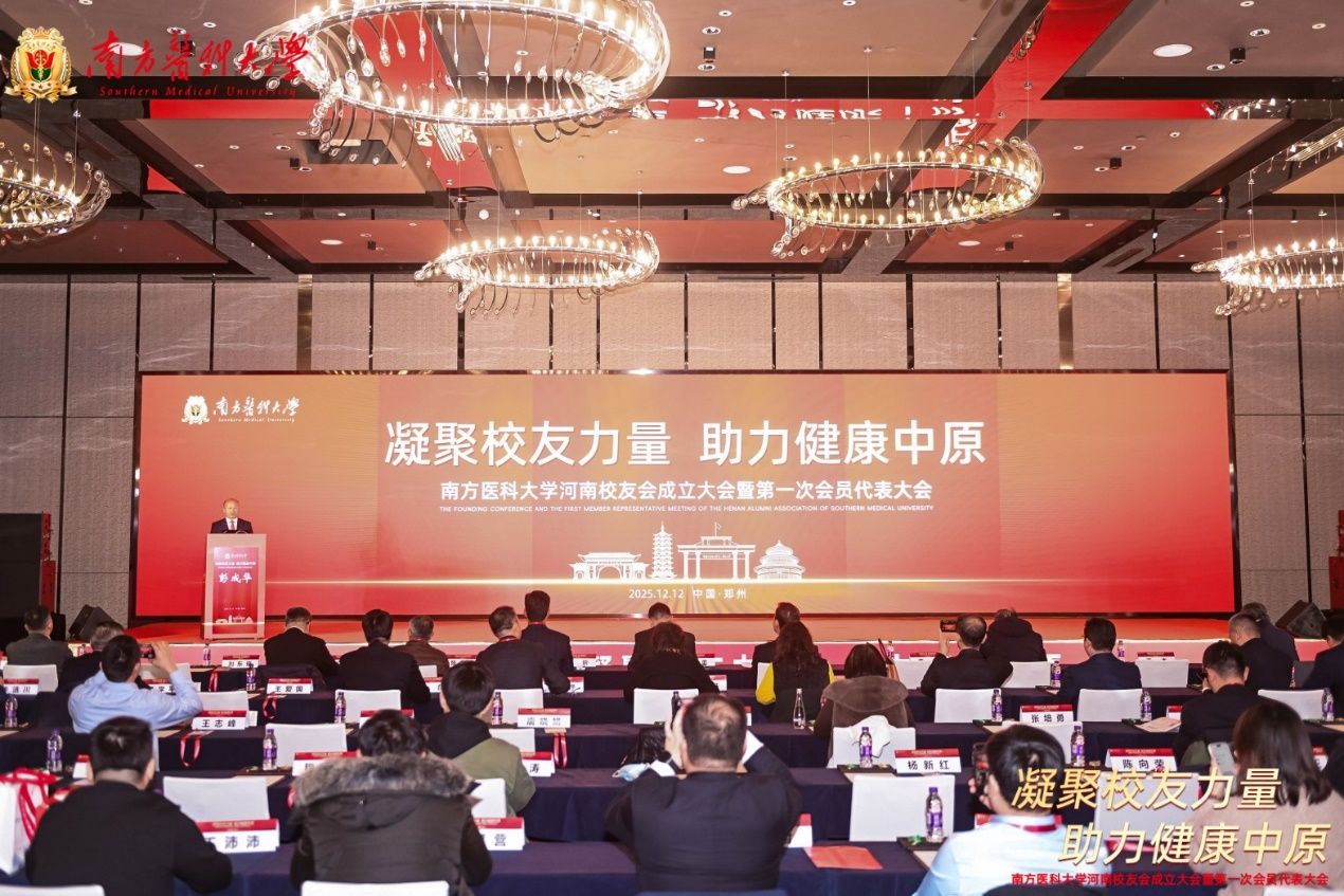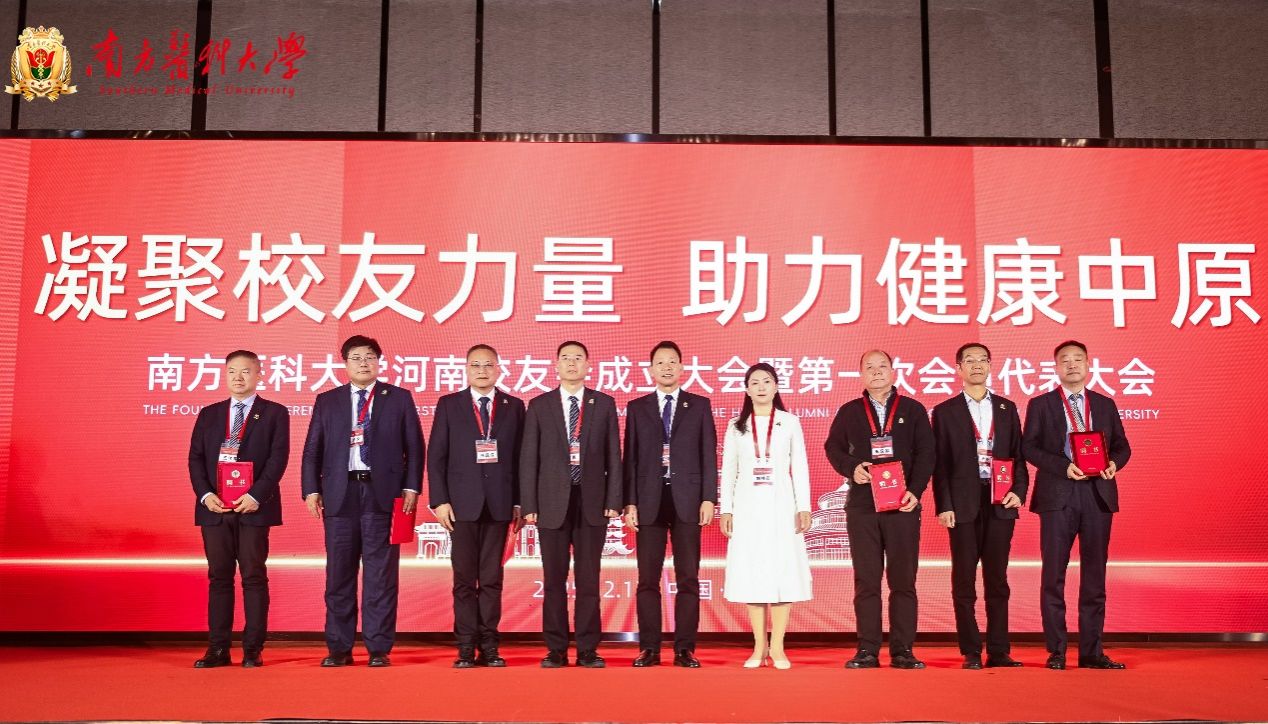 12 月 12 日,南方医科大学河南校友会成立大会暨第一次会员代表大会在郑州召开。我校副校长杨海文、郑州大学学术副校长姜勇与新当选会长刘林霞共同为“南方医科大学河南校友会”揭牌,与会领导为理事会、监事会成员及理事代表颁发证书与聘书,标志着河南校友会正式扬帆起航,开启服务校友、助力发展的新征程。