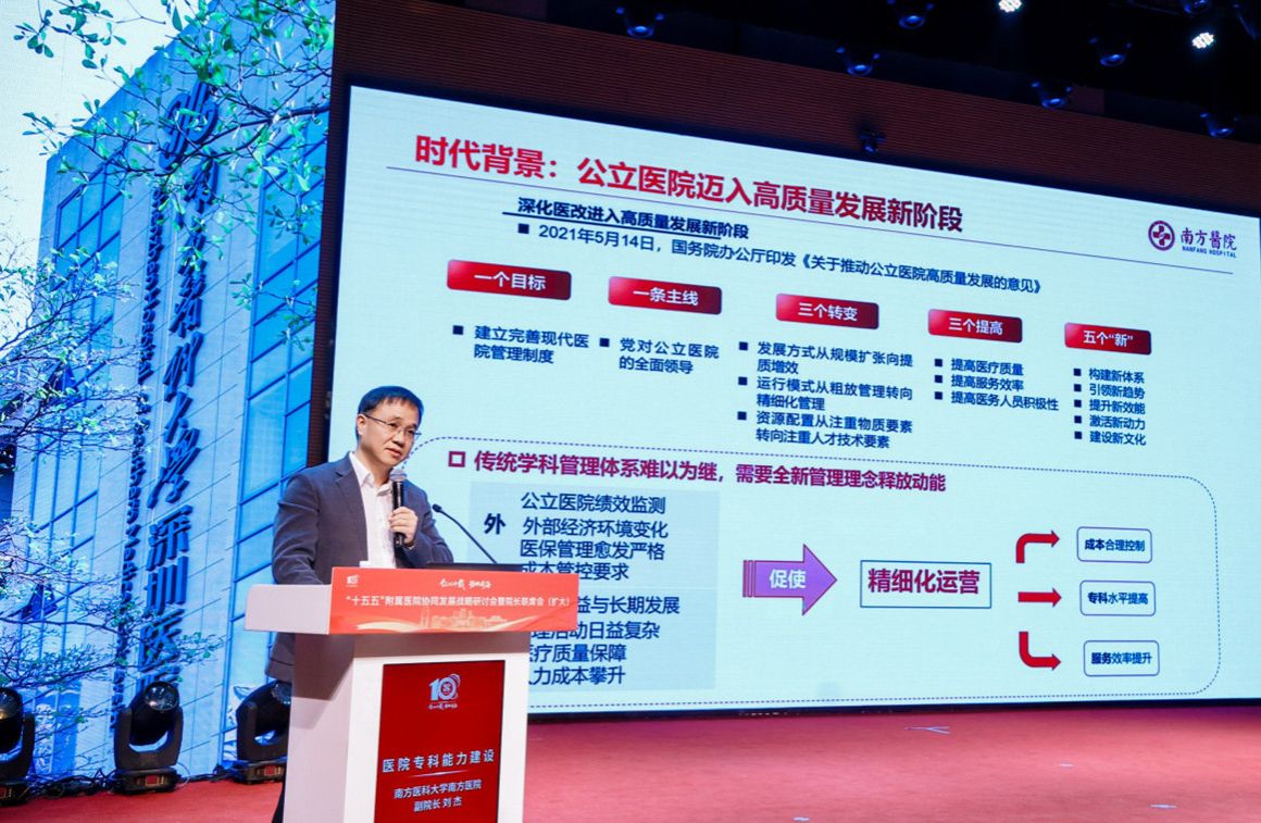 南方医院副院长刘杰分享了“四维一体”专科能力提升方案,通过学科内涵建设与精益运营管理,实现专科实力持续跃升。