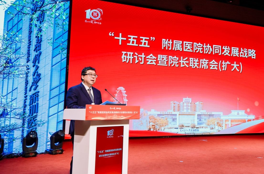 12月27日,由医院管理处主办、深圳医院承办的“十五五”附属医院协同发展战略研讨会暨院长联席会(扩大)召开。会议聚焦高质量协同发展主题,交流分享了附属医院高质量发展的创新举措,进一步统一思想、集思广益、凝聚共识,为附属医院“十五五”发展开好局、起好步。