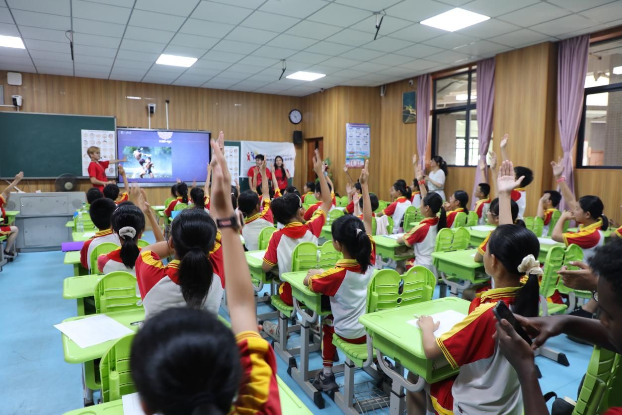 “What's your favorite Chinese festival?”在仁化县城北小学的英语课堂上,来自马达加斯加的留学生志愿者举着印有灯笼的卡通图片,用趣味问答点燃了孩子们的热情。我校志愿者服务队与顺德马冈党群服务中心、仁化丹霞街道及多所中小学结对共建,用丰富多彩的活动为乡村孩子打开“世界之窗”。在顺德马冈,他们打造“国际文化体验日”,留学生教小朋友唱英文歌谣,小朋友则手把手传授剪纸等传统手工艺,指尖翻飞间传递跨文化温情;操场上,留学生们还化身“足球教练”,耐心纠正孩子们的射门姿势、讲解传球技巧,欢呼声与笑声在草坪上回荡;医学专业的留学生还化身“健康小卫士”,通过“健康闯关”游戏,给孩子们讲解情绪管理小技巧,让实用的健康知识在欢声笑语中扎根。