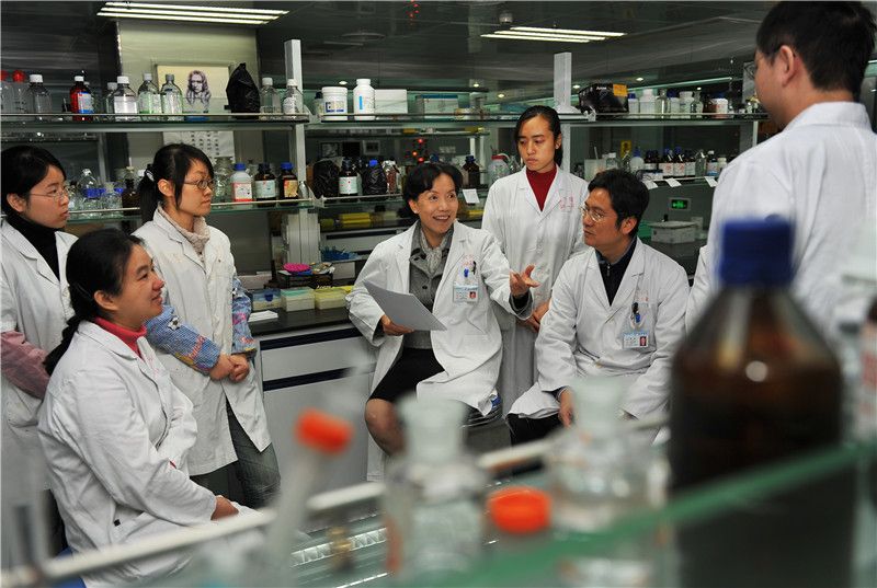 侯凡凡院士和研究人员在实验室讨论课题