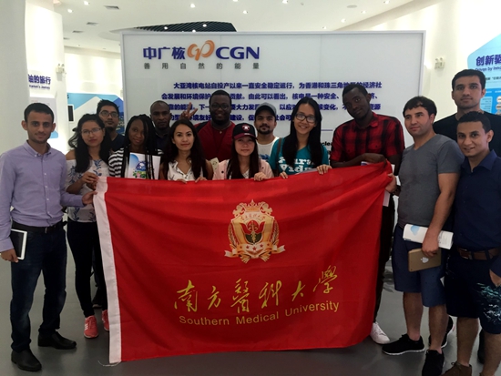 第二天,留学生们参观了中广核集团下属的大亚湾核电基地。该基地目前负责大亚湾核电站、岭澳核电站一期、岭澳核电站二期共六台百万千瓦级核电机组的运营,是目前世界上运装机容量最大的轻水压水堆核电基地,年发电量达450亿度。很多留学生都是第一次近距离接触核电站,纷纷拍照合影留念。