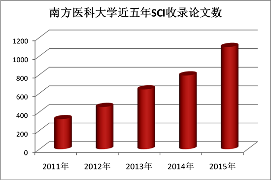 在高水平科技论文收录方面,我校卓越国内论文1191篇(全国排名第26名),表现不俗SCI收录论文439篇(全国排名第48名),SCI学科影响因子前1/10的期刊论文117篇(全国排名第33名)。其中,南方医院卓越科技论文652篇,在全国医疗机构排名第5名。