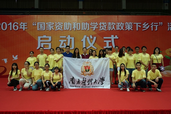 7月10日上午,广东省2016年“国家资助和助学贷款政策下乡行”启动仪式在广东工业大学大学城校区举行。我校共有4个学院3支队伍参与了本次活动。这3支队伍分别是来自中医药学院的“爱益行”团队、护理学院与第一临床医学院的“仁者爱人”团队、人文与管理学院的“与梦同行”团队。