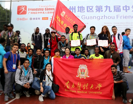 11月28-29日,我校72名留学生参加了由广州市人民政府外事办公室在天河体育中心主办的广州地区第九届中外友人运动会,获得了足球比赛第四名、第七名,保龄球比赛第八名的优异成绩。