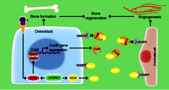图2 成骨细胞分泌Cxcl9,调节成骨与骨内血管形成。