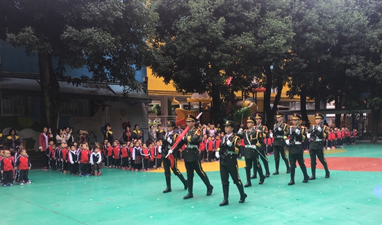 2017年11月27日,护旗队来到我校幼儿园,为幼儿园全校师生带来了一场庄严的升国旗仪式。活动结束后幼儿园所有班级依次与护旗队的同学合影留念,并对此次活动进行了高度评价。