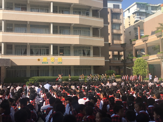 2017年11月3日,我校国旗护卫队队员应邀参加广州市铁一小“爱国主义教育总结月”活动。我校护旗队步伐整齐划一、动作标准有力、精神饱满,为广铁一小的小学生们展示了庄严肃穆的升国旗仪式,培养了孩子们的爱国主义精神。