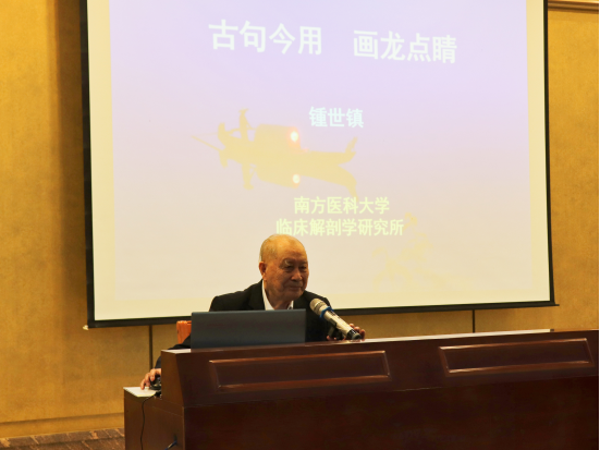 钟世镇以其丰富的教育科研经历,跟在场的师生分享了他担任学科带头人的点滴体会。在现代生物高技术迅猛发展的新时代,人体解剖学科研工作曾遭遇“枯藤老树昏鸦,古道西风瘦马”的困境。但是,“山重水复疑无路”,钟世镇及其同事始终没有放弃,他们艰苦地探索着“人体解剖学跨学科培养外科学博士的新模式”。经过二十多年躬耕不辍的实践和探索,该学科的博士生报考人员“门庭若市”,开辟了一条实用价值高,学术覆盖面大的新路子,学科发展呈现了一派“柳暗花明又一村”的新景象。
