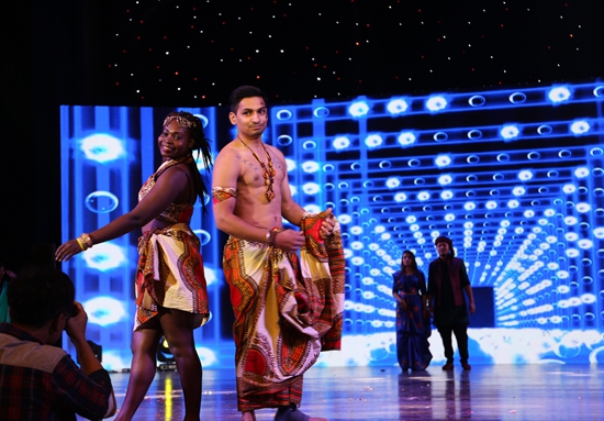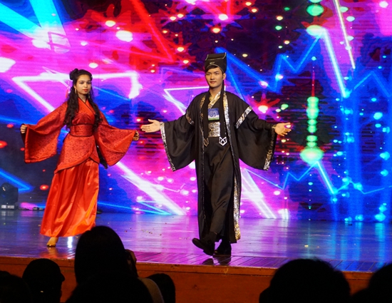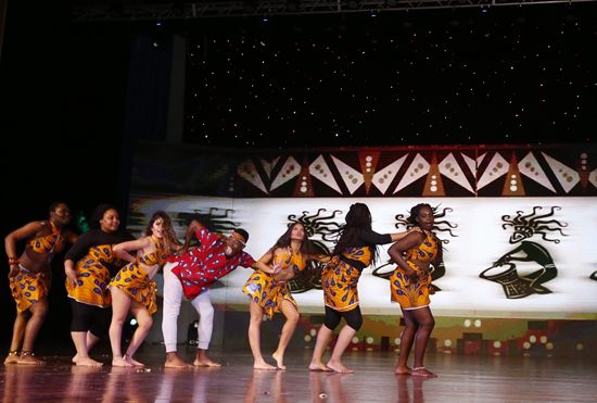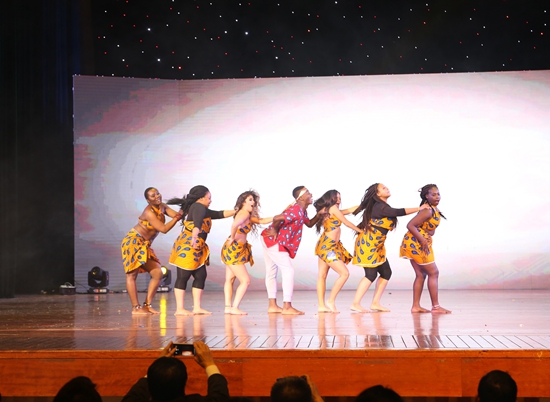 在动感欢快的音乐声中,来自“一带一路”沿线16个国家的43名来华留学生身着各国民族服装,以婀娜多姿的步伐,抬头挺胸向观众走来。他们极具民族特色的服装,不仅展示了各国独特的民族文化,也彰显了我校留学生的精神面貌和青春活力,给现场观众带来一场美轮美奂的视觉盛宴。另一个节目《舞动非洲》令人眼前一亮。强烈而感人的旋律、舞者们迅速而有力的动作,以及包含非洲风土人情的LED背景,无不让人如身临其境。