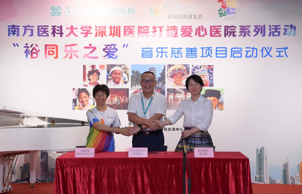 据悉,深圳医院、深圳市福田区飞越彩虹民族文化交流中心、深圳市裕同慈善基金会联合发起“裕同乐之爱”音乐慈善项目,由深圳市裕同慈善基金会捐赠资助,将定期邀请具有代表性的公益团体和爱心人物来到深圳医院进行公益表演,与市民一起感受和分享音乐的魅力,让医院的患者、员工和周围社区的群众能够有机会在深圳欣赏到更多更好的演出。该项目旨在围绕“健康+艺术”主题,用音乐辅助治疗,用艺术促进健康,把医院打造成社区健康教育基地和医疗咨询中心,推进公益事业,传播承载温暖人心的正能量。