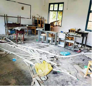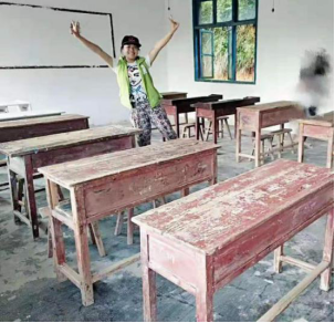 第二天一早,支教队前往学校查看教室。这是一个废弃已久的学校,整个操场几乎被各种废弃的垃圾覆盖,教室的地板上、桌凳上更是厚厚的灰尘,各种资料、文件夹以及诸如地球仪等简单的教具随意丢在地面上或桌子上。支教队的队员们立即投入到打扫工作中,忙了整整一个上午。课桌不够,队员们自己寻找。终于,废弃杂乱的教室变成了干净整洁的宝贝教室。
