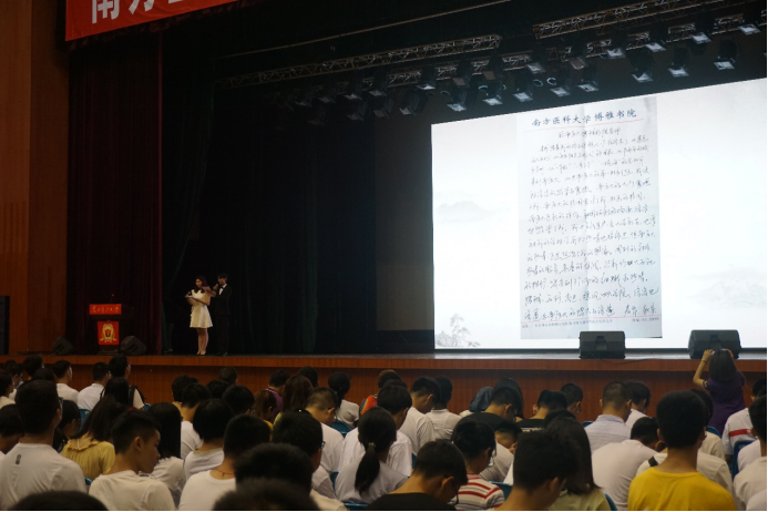 集体生日环节过后,书院还特地在成人礼这天把一封报到当天父母写下的信念给大家听——"如画的校园,南医大迎新的接待,社团招新的场面,深深地感染了我。我也曾经是一名大学新生,也曾被我的学姐学哥们热情地接待过,但南医大的热情,还是超出了我的想象……但愿在南医大的日子,让孩子能够更加明理智信,就像医生以救死扶伤为天职一样。孩子能够热爱生活,热爱社会,与人友善,作为家长,我们也相信:在南医大老师的不倦教诲之下,每一个走出南医大的孩子,都必将是对社会有用,对国家有用,救死扶伤,乐于助人,诚信友善。成为家庭,学校都引以为自豪和骄傲的人。”