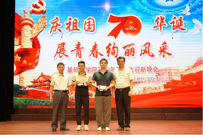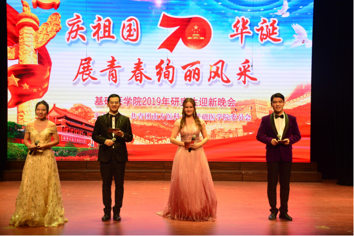 10月11日晚,基础医学院在国际会议厅举办“庆新中国70周年华诞,展青春绚丽风采”2019年研究生迎新晚会。本次晚会既是一次对南医新生力量的启蒙,又是一场致敬伟大祖国的献礼。研究生院党委副书记张原英、学院党委书记常军武、院长白晓春、副书记席辉以及学院部分科室主任与2019级研究生新生共享视听盛宴。