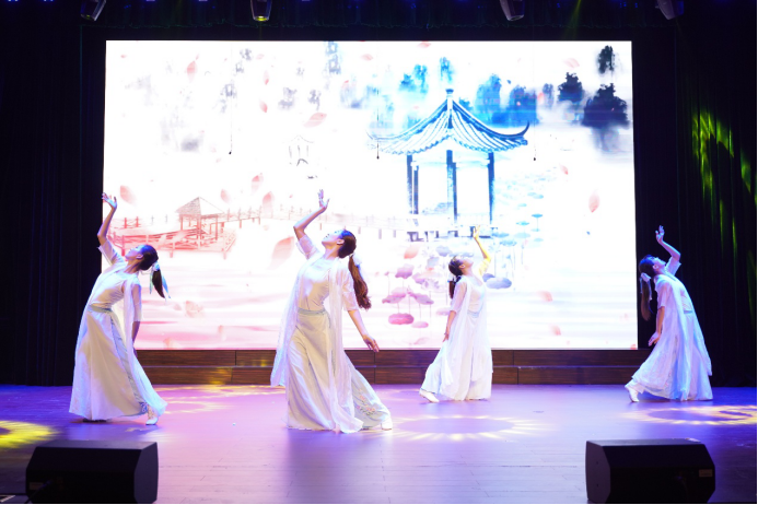 光阴流转,始终不变的是生而为龙的炎黄血脉;世事更迭,萦绕心头的还是宫商角徵的华夏古典。翩跹的舞步应和着竹笛声声,唯美的舞姿彰显着传统文化经久不衰的魅力。音乐渐停,掌声雷动,为古典中国骄傲的同时,我们更期待祖国在新时代的奋起与辉煌。《五星红旗,我想对你说》,70年风雨,锻造着愈加挺拔的中国脊梁;70年浮沉,见证着一一实现的中国梦想。在诗的国度,以深情为句读,讴歌我们的伟大祖国。晚会的最后,全体师生合唱起《青春舞曲》与《我和我的祖国》,为新中国70周年华诞、研究生生活的开启着上浓墨重彩的一笔。