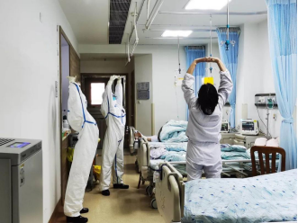 2月15日,经过严格的防护知识培训和考核后,医疗队正式入驻武汉市一医院。武汉市一医院是武汉市政府临时改建的定点收治重症新冠肺炎患者医院。这里一共有来自五个省市的十支医疗队一线医护人员超过两千人,我们接管的是第12病区,在感染楼14楼,是原来脊柱外科病房改造的。