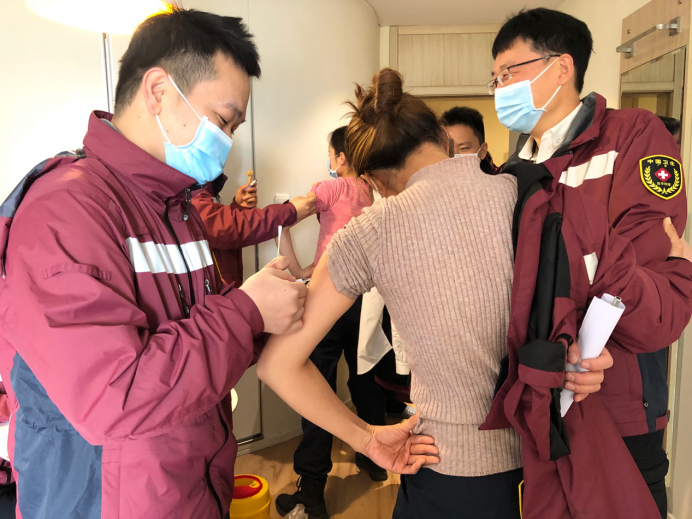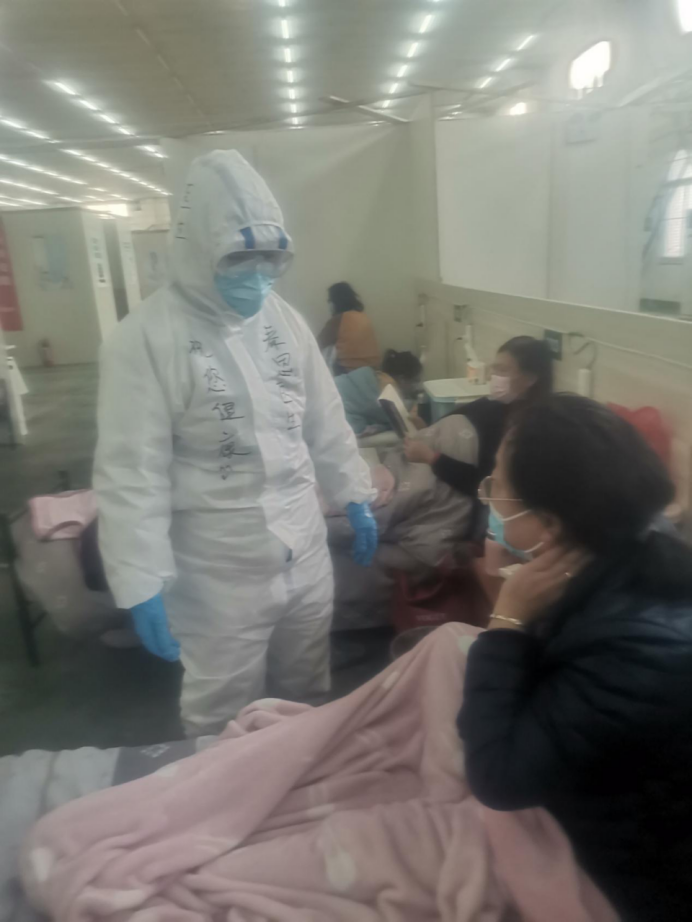 在舱里,我们队的主要任务是接管西区所有的300名患者,负责他们的对症治疗,包括呕吐、发热、胸闷、呼吸困难等;登记一部分基础情况较差的患者,和负责人联系,一旦武汉市定点医院有床位立即转出给予及时的治疗;如果有新患者入院,做好登记,和药物的发放;尽可能安抚患者情绪,给予他们关怀。
