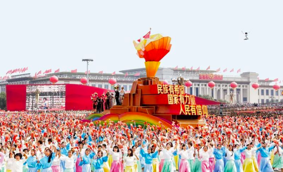 2019年10月1日,庆祝中华人民共和国成立70周年大会在北京天安门广场隆重举行。这是群众游行中的“凝心铸魂”方阵