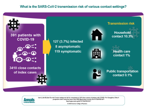 近日,《Annals of Internal Medicine》(内科学年鉴, IF=21.317)在线发表了公共卫生学院毛琛团队与广州市疾控中心合作的题为“Contact Settings and Risk for Transmission in 3410 Close Contacts of Patients With COVID-19 in Guangzhou, China: A Prospective Cohort Study”的研究成果(https://www.acpjournals.org/doi/10.7326/M20-2671#t3-M202671)。广州市疾控中心罗雷主任医师为第一作者,公共卫生学院刘丹博士后、广州市疾控中心廖鑫隆医师、公卫学院吴娴波教授为共同第一作者;公卫学院毛琛教授为第一通讯作者,广州市疾控马钰主管医师、广州妇儿中心唐金陵教授、广州市疾控韩志刚主任医师,为共同通讯作者。