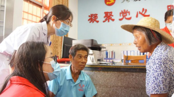 讲座结束后,医生们为村民开展义诊活动,志愿者们则担当起小助手,为村民们量血压、做医生的小翻译。村民们大多说着当地方言,尽管语言上有些许障碍,但在村干部和本地学生志愿者的帮助下,每位就诊的村民都得到了细致的诊疗建议。村委的干部们表示:“医生态度好、细心,很感谢他们,希望有更多这样的活动。”