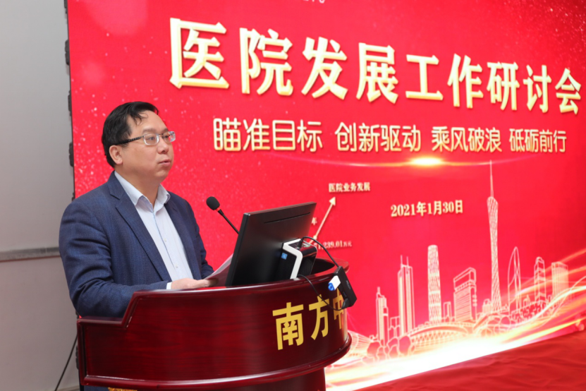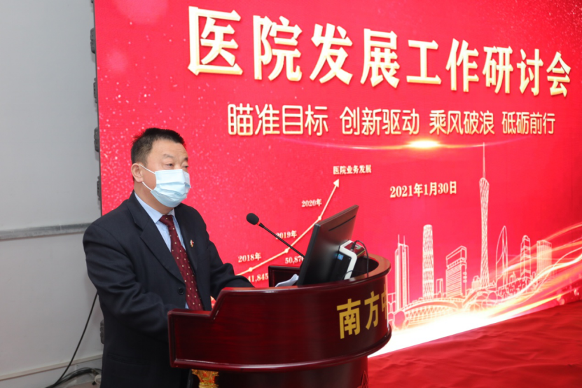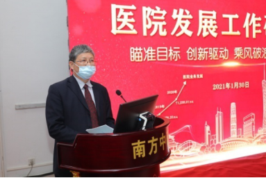 南方医科大学副校长刘叔文传达了黎孟枫校长在学校中医药大会上的指示精神,充分肯定了医院在“十三五”期间取得的优异成绩。