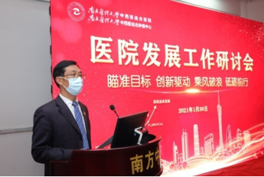 严冬作总结发言,他指出,医院发展工作研讨会是在中国特色社会主义进入新时代、广东中医药强省建设迈出新步伐、学校高水平大学建设站在新起点、医院发展踏上新征程、“十四五”布局开篇之际召开的一次重要会议。