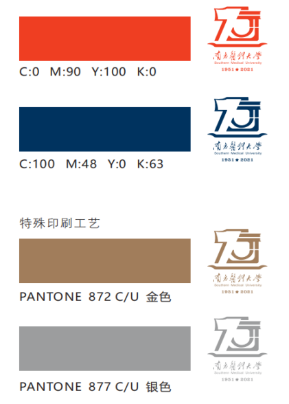 3.校庆标志主要用于南方医科大学70周年校庆相关活动宣传、形象展示、会务用品和校庆纪念品等设计制作。